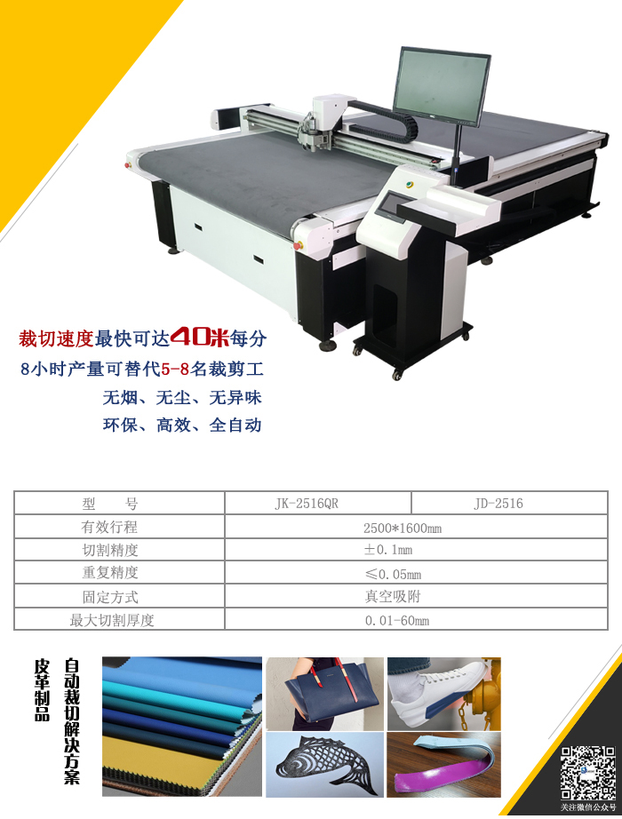 震動刀自動送料智能切割機集智能全自動排版、全自動傳送、智能分頁、可連續作業等技術的生產線式高效切割設備,特別適合卷狀柔性料(如人造革及各類工業用布等)的智能裁剪。適用于汽車內飾、沙發座椅等行業。